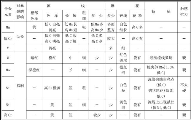 合金元素对火花影响表