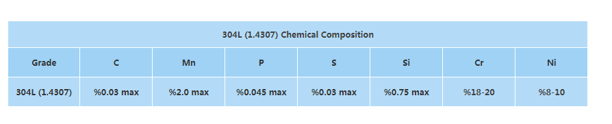 304L级不锈钢是应用最广泛的不锈钢牌号之一。该牌号非常接近 304 级不锈钢,根据 EN 标准也显示为 1.4307 或 X2CrNi18-9。根据 UNS 规范,它也称为 UNS S30403。304L的名称可以用304和L分开来解释。L表示Low,low表示材料的低碳含量,所以304L表示304等级低碳含量,其余性能与304等级不锈钢几乎相同。由于碳含量较低,304L 级材料的可焊性略好于 304 级。